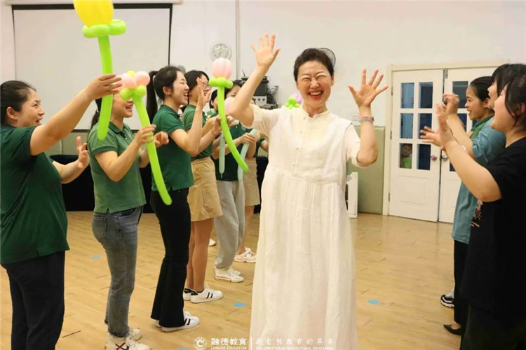 团拓活动上,程老师用奥尔夫律动引导老师们全身心地投入到音乐世界,以独特的方式抒发内心世界。当音乐成为老师,孩子自身的需求,那么对于乐感、表演及语言文化就能够更轻松自然地掌握,并且牢牢记住。